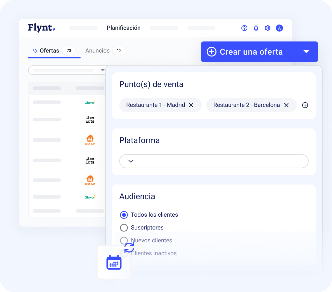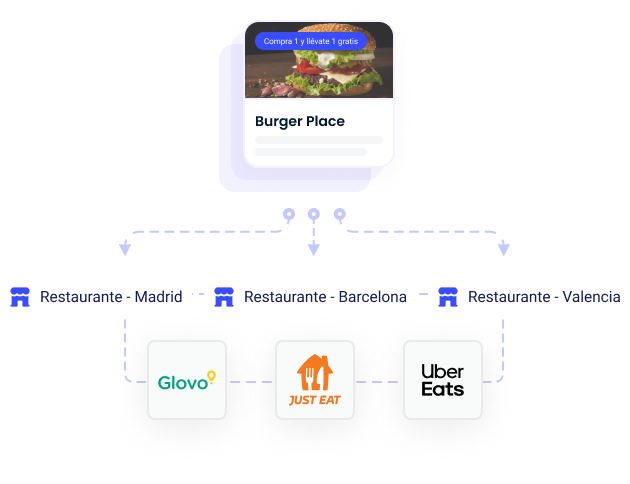 - Crea tus ofertas y anuncios con un solo clic para todos tus restaurantes y marcas virtuales.