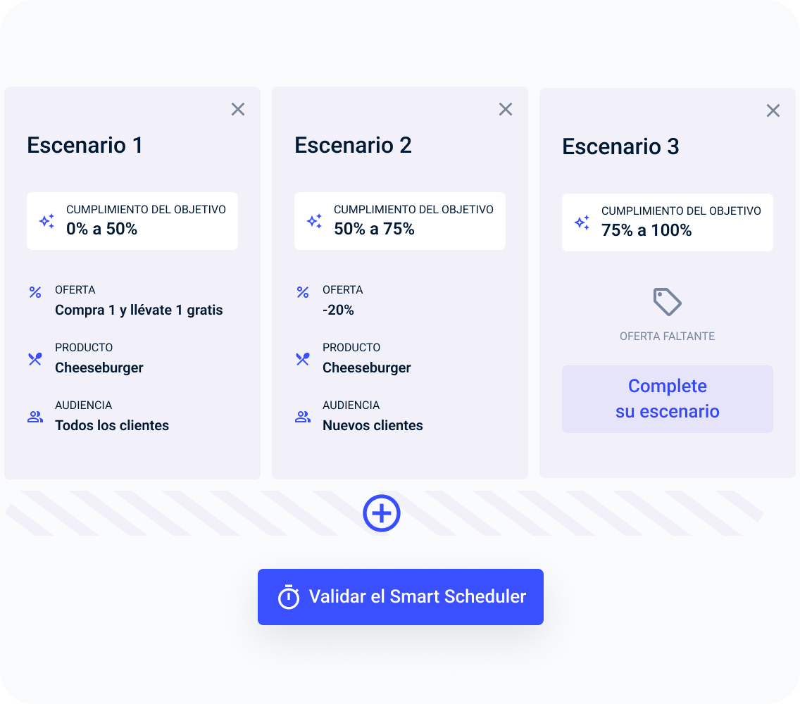 Crea hasta 6 escenarios de ofertas promocionales.